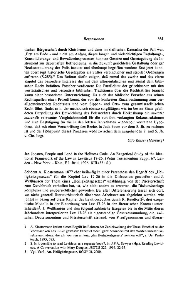 People and Land in the Holiness Code. An Exegetical Study of the Ideational Framework of the Law in Leviticus 17-26 (Vetus Testamentum Suppl. 67) Jan Joosten