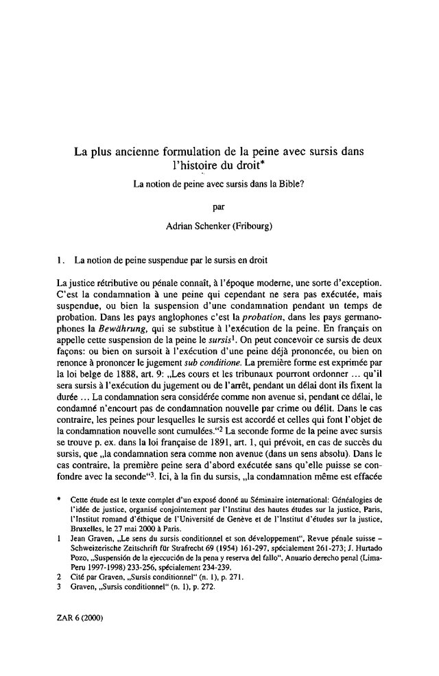 La plus ancienne formulation de la peine avec sursis dans l'histoire du droit: La notion de peine avec sursis dans la Bible?