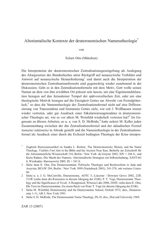 1 Siehe dazu E. Otto, Das Deuteronomium. Politische Theologie und Rechtsreform in Juda und Assyrien, BZAW 284, Berlin / New York 1999 (Nachdruck 2001), 341–378, mit weiterer Literatur.