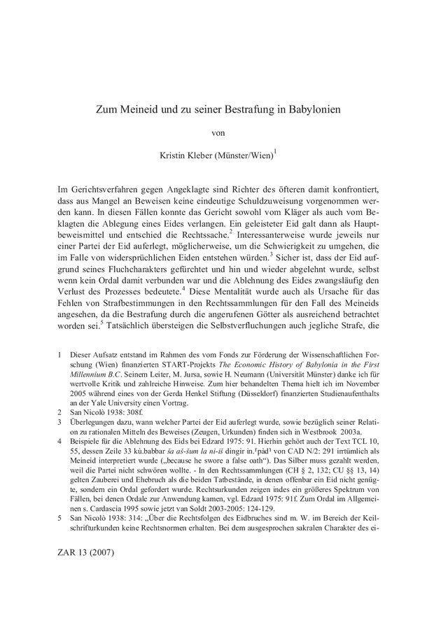 20 Ries, G. 1999 Zur Strafbarkeit des Meineids im Recht des Alten Orients. in: V. Beuthien et al. (Hrsg.), Festschrift für Dieter Medicus. Köln, Berlin, Bonn, München, 457–468.