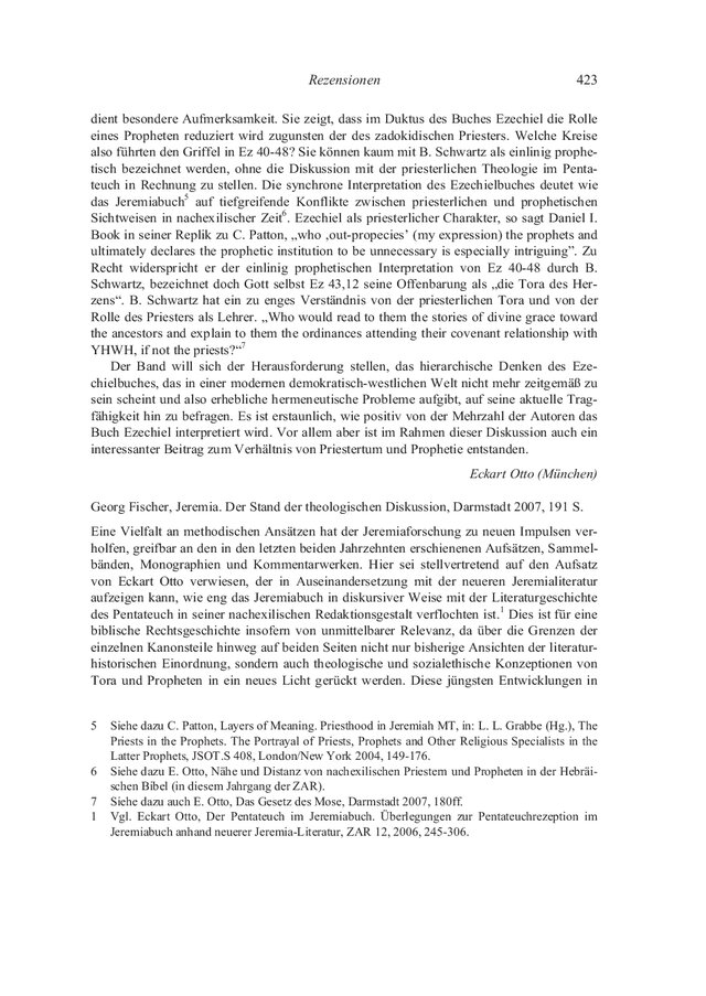 1 Vgl. Eckart Otto, Der Pentateuch im Jeremiabuch. Überlegungen zur Pentateuchrezeption im Jeremiabuch anhand neuerer Jeremia-Literatur, ZAR 12, 2006, 245–306.