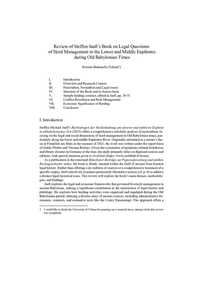 Review of Steffen Jauß’s Book on Legal Questions of Herd Management in the Lower and Middle Euphrates during Old Babylonian Times