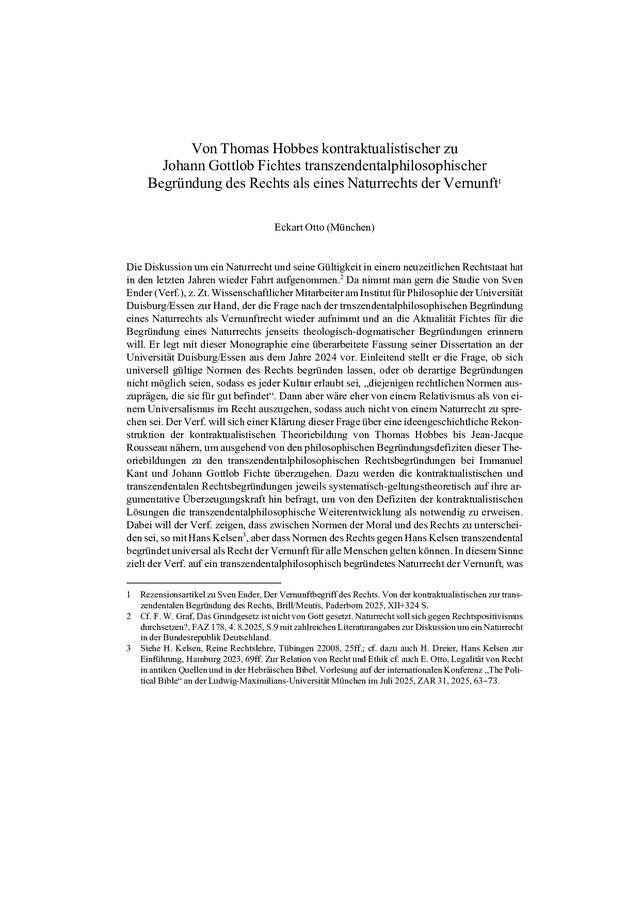 Von Thomas Hobbes kontraktualistischer zu Johann Gottlob Fichtes transzendentalphilosophischer Begründung des Rechts als eines Naturrechts der Vernunft